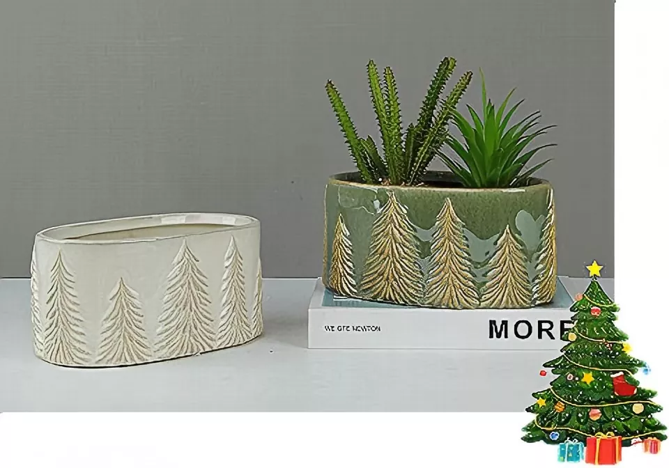 Die BYF Embossed Christmas Pine Vase-Serie umfasst eine Reihe sorgfältig handgefertigter Keramikvasen und Blumentöpfe mit einem klassischen Prägemuster immergrüner Bäume. Die Größen reichen von kleinen Pflanzgefäßen für Sukkulenten bis hin zu großen Statement-Vasen. Jedes Stück ist so gestaltet, dass es Ihrer Inneneinrichtung einen Hauch von natürlichem, festlichem Charme verleiht. Die satten grünen und klaren weißen Farboptionen, oft gepaart mit roten Beerenakzenten und einer Schicht „Schnee“-Dekoration, machen diese Serie zum perfekten Mittelpunkt für die Schaffung einer warmen und einladenden Urlaubsatmosphäre.