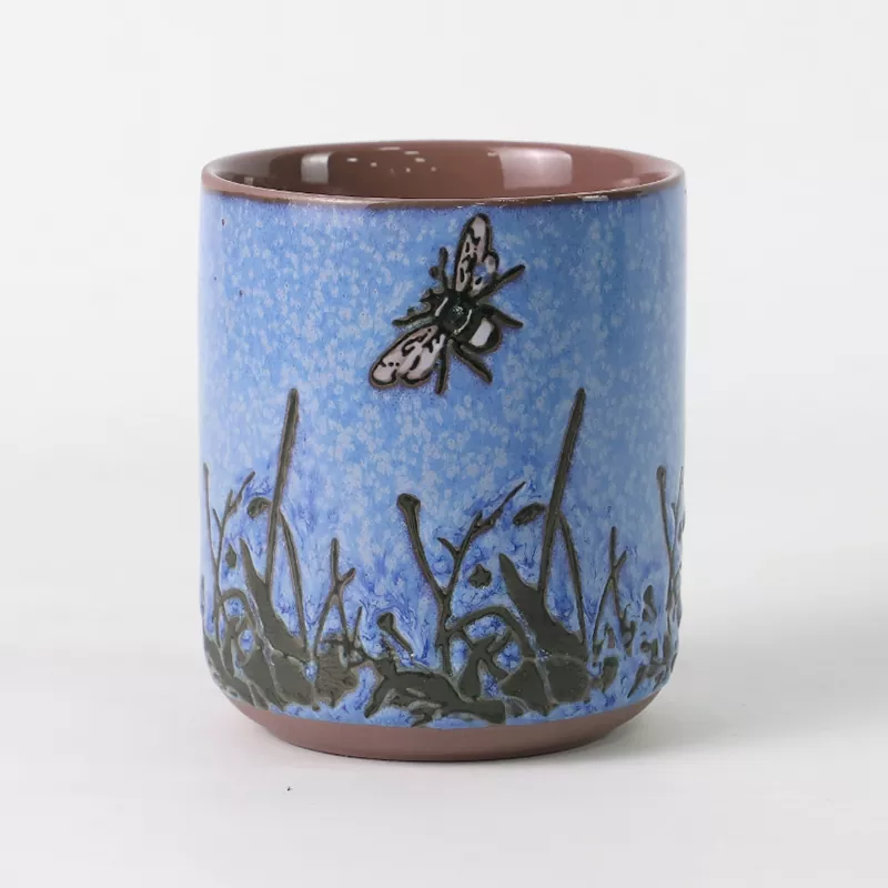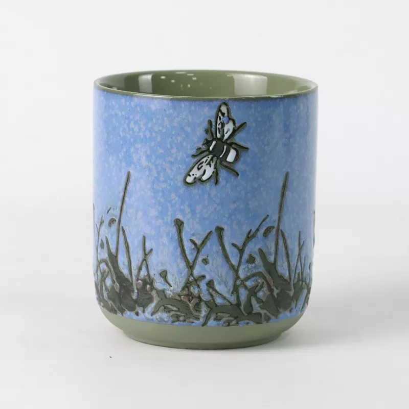 Die Keramik-Kerzenhalterserie mit Insektenmuster ist von den natürlichen Bildern der „Cordyceps-Symbiose“ inspiriert und fängt die Essenz der klassischen östlichen Ästhetik und die mystische Schönheit des Sternenhimmels ein. Es verbindet bei hoher Temperatur im Ofen gebrannte Glasur mit handgemaltem Unterglasurdekor und durchläuft Dutzende Anpassungen und Verbesserungen, um letztendlich drei charakteristische Farben zu schaffen: Starry Night Blue, Mystic Green und Deep Indigo. Die Außenwand des Bechers ähnelt einem riesigen Sternenhimmel, der mit feinen Goldflecken übersät ist, als ob der Glanz der Milchstraße in der Handfläche gehalten würde; Die Innenwand ist mit einer reinen, spiegelklaren Glasur versehen, die einen starken visuellen Kontrast zur Sternenhimmelstruktur auf der Außenseite bildet und ein raffiniertes Zusammenspiel von Licht und Schatten unter Beweis stellt. Die handgemalten Schmetterlings-, Grashalm- und Löwenzahnmuster auf der Unterseite, die sorgfältig von erfahrenen Kunsthandwerkern gefertigt wurden, sind lebendig und lebendig und erzählen scheinbar eine ewige Geschichte vom Kreislauf des Lebens und der Symbiose der Natur. Jede Tasse ist ein einzigartiges Kunstwerk, das Ehrfurcht vor der Natur und eine Feier des Lebens verkörpert.