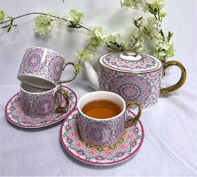 Verzauberter Porzellanbecher -Set mit Teekanne