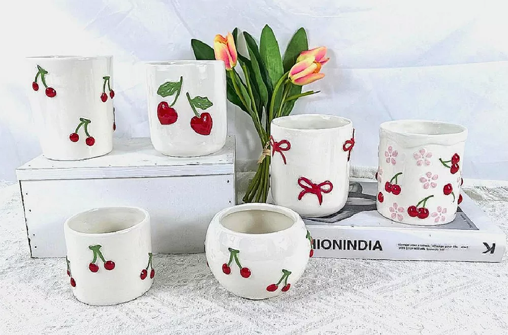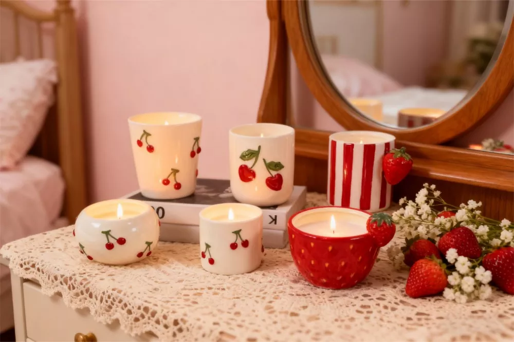 Die Super Adorable Ceramic Candle Jar-Serie von BYF umfasst hochwertige handgefertigte Keramikkerzengläser mit einem „supersüßen“ Designstil. Die Designs umfassen klassische süße Elemente wie rote Kirschen, dreidimensionale Schleifen und Erdbeeren mit einer glatten Glasur und verschiedenen Formen. Es besteht aus sicheren und umweltfreundlichen Materialien, verfügt über eine hervorragende Hitzebeständigkeit und passt perfekt zu Standarddochten und verschiedenen Wachsbasen, was es sowohl zu einem hochwertigen Kerzenbehälter als auch zu einem künstlerischen Dekorationsgegenstand macht, der Ihre Inneneinrichtung aufwertet.